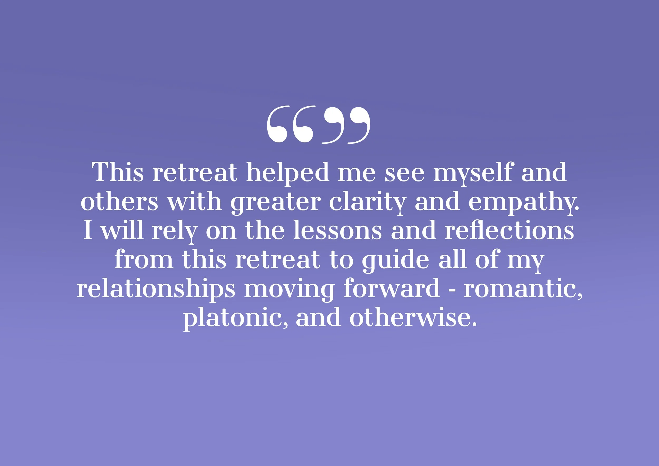 Participants praised the retreat's ability to open their hearts and minds, citing newfound clarity in how they see themselves and others. Testimonials underscored the retreat's role as a catalyst for growth, with many referring to invaluable lessons that will guide their future interactions and foster more meaningful connections in their lives.