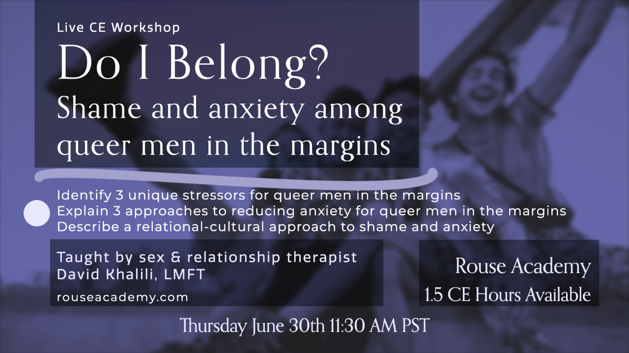 Queer men in the margins face unique stressors that we as wellness providers benefit from knowing to provide them the care and attention they deserve. To do this, we need to be aware of these stressors and understand how they impact queer men’s lives. We hope that this article has helped you learn more about some of these stressors so that you can better serve the queer community. If you want to learn more, join us for our CE workshop on queer men in the margins, where we will explore these topics in further detail.